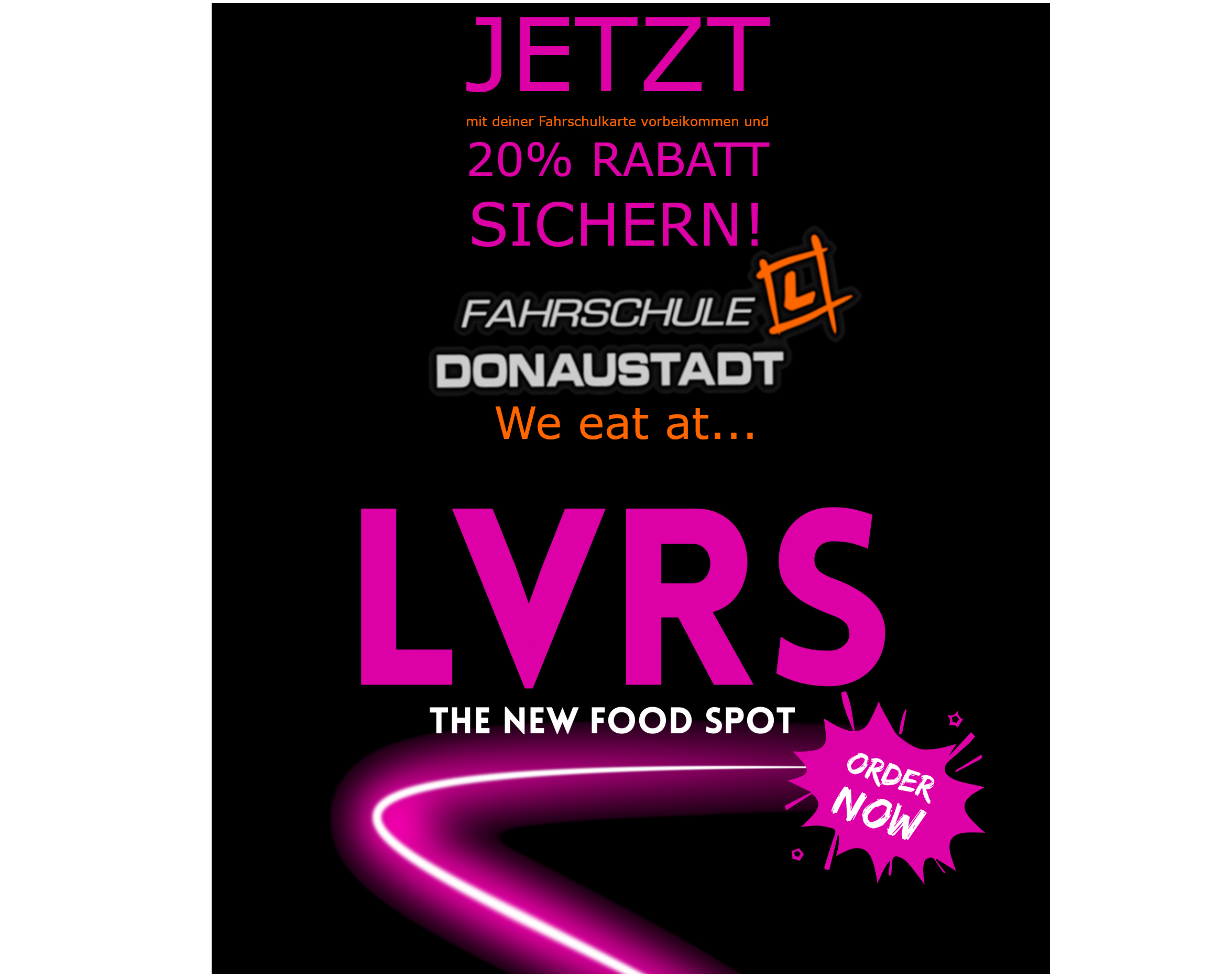 Du meldest dich für deinen B Führerschein an, mit deiner Fahrschule Donaustadt Karte bekommst du auf dein Menü -20% Rabatt!